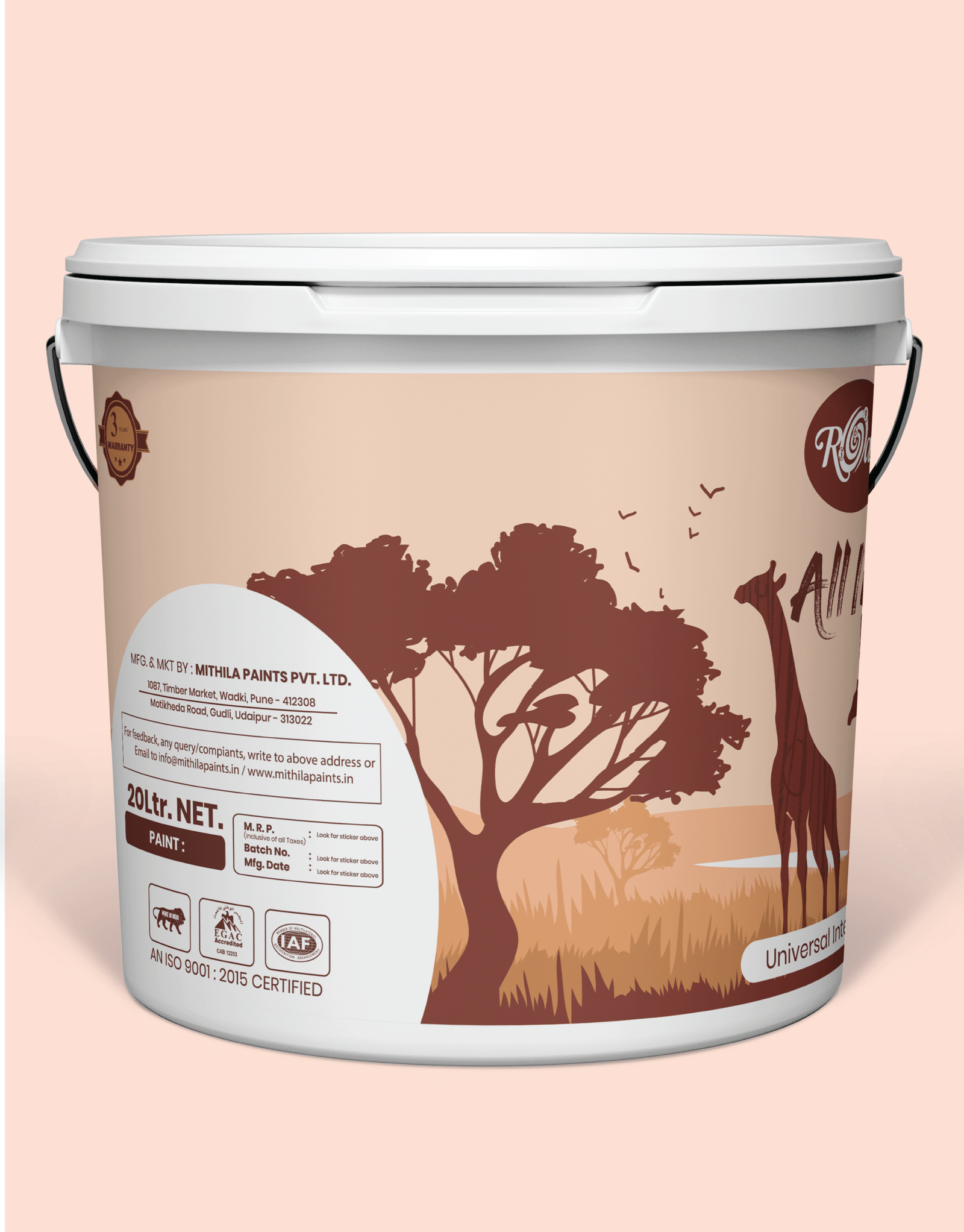 portable soft water. A gap of 24-hours should be given between two coats. For the best performance use ROAM369 interior/exterior emulsion paint.