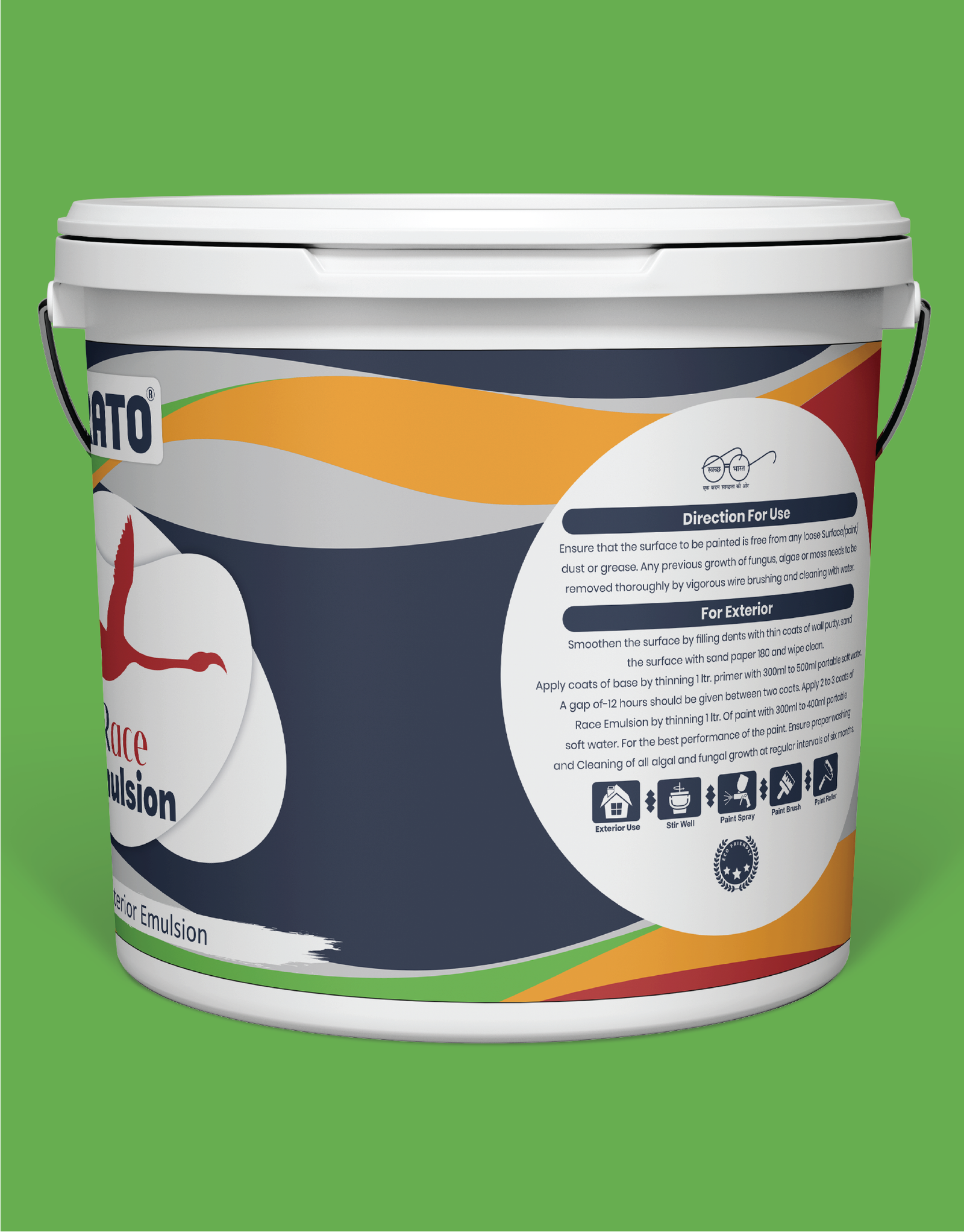 Apply 2 to 3 coats of ROAM369 Eco Interior/Exterior Emulsion by thinning 1 ltr. of paint with 300ml to 400ml portable soft water.